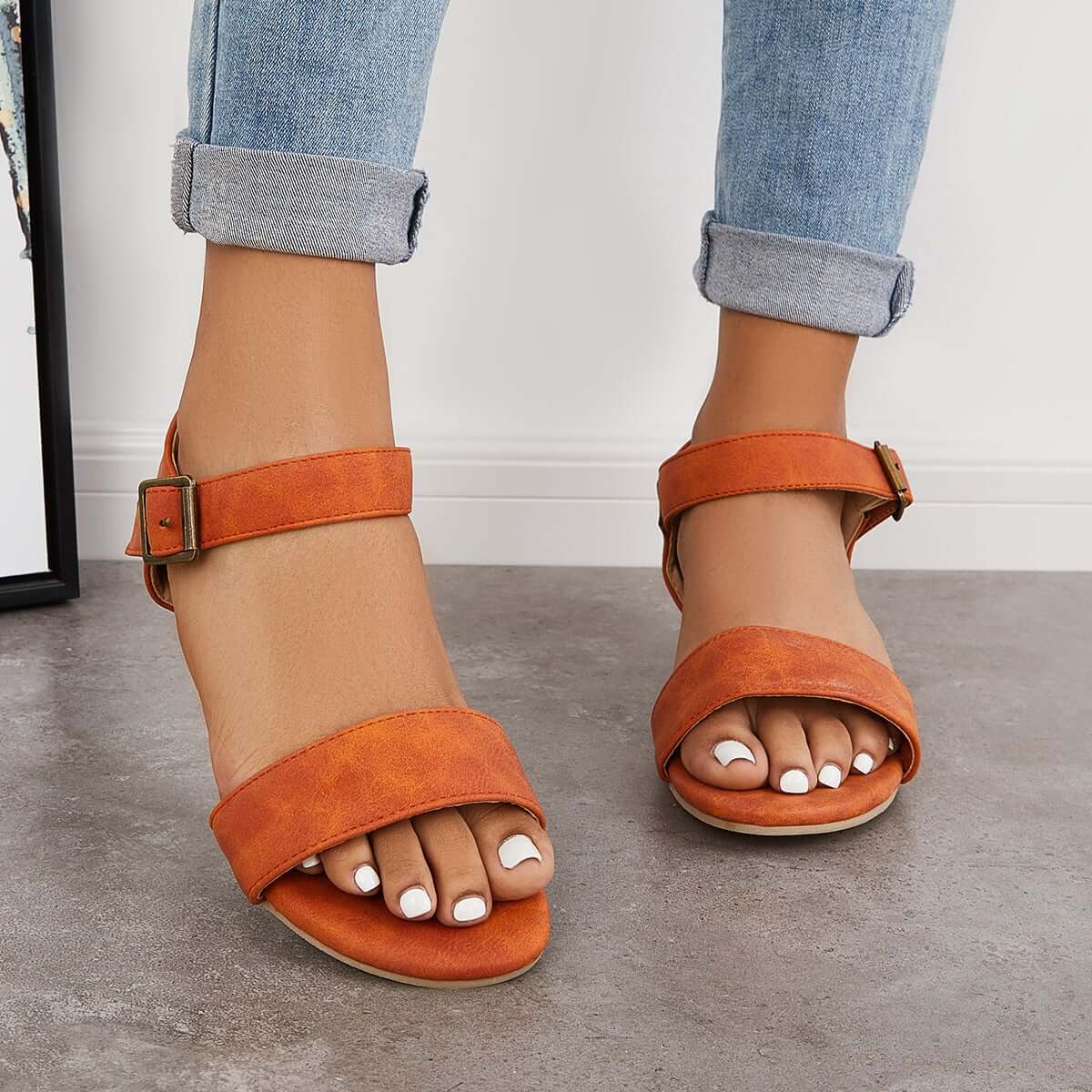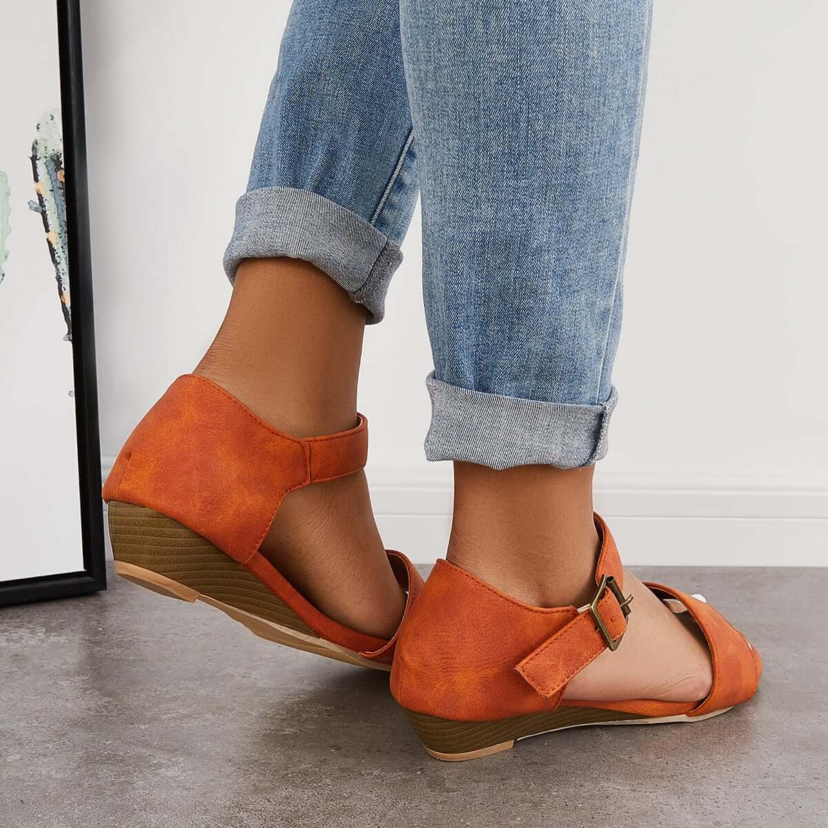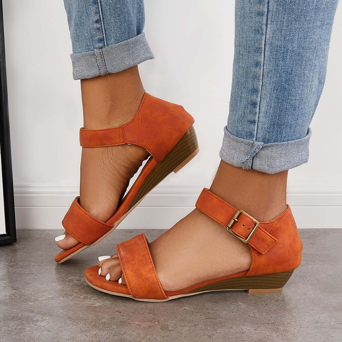 Black Open Toe Low Heels Wedge Ankle Strap Sandals