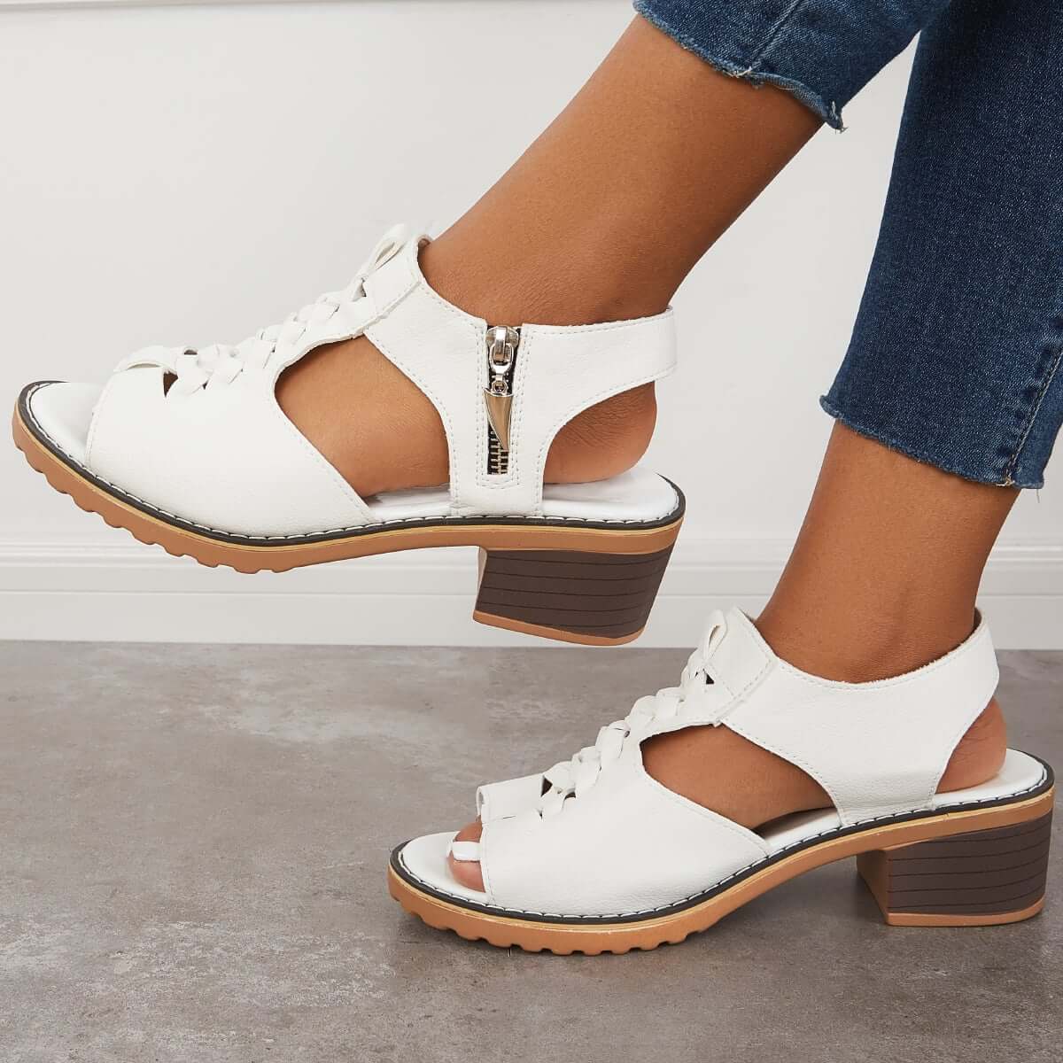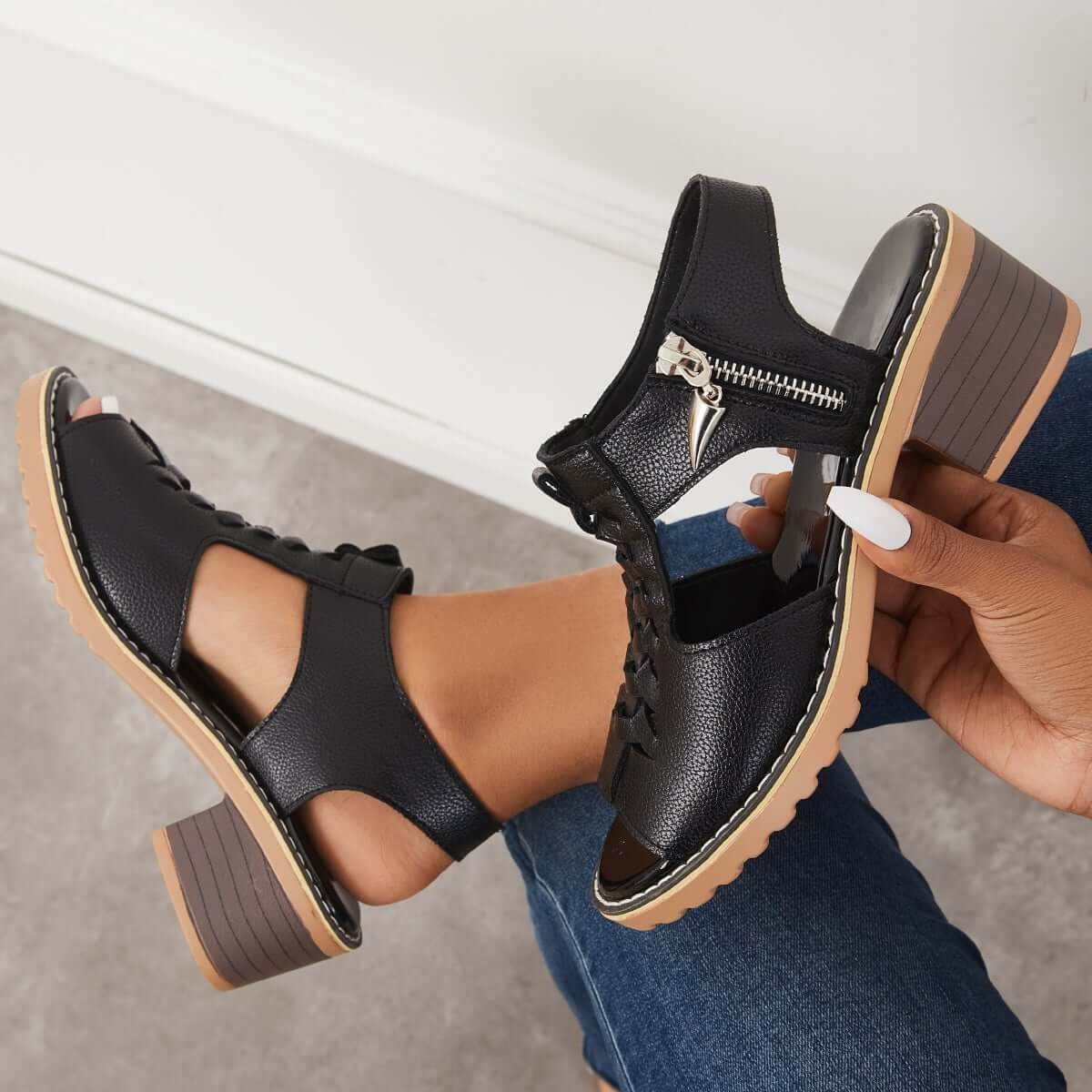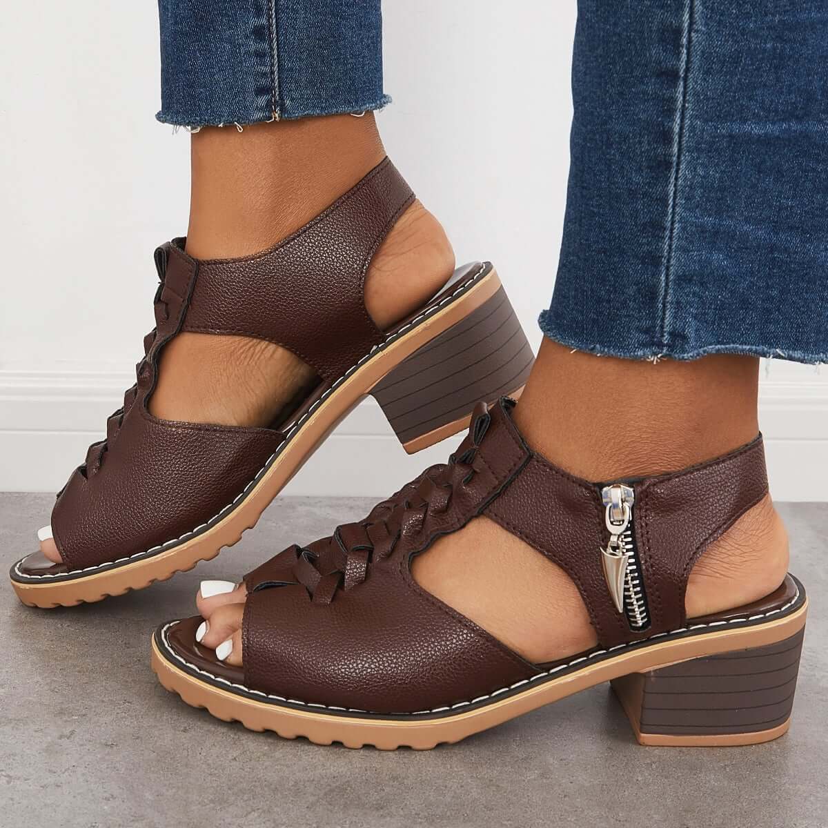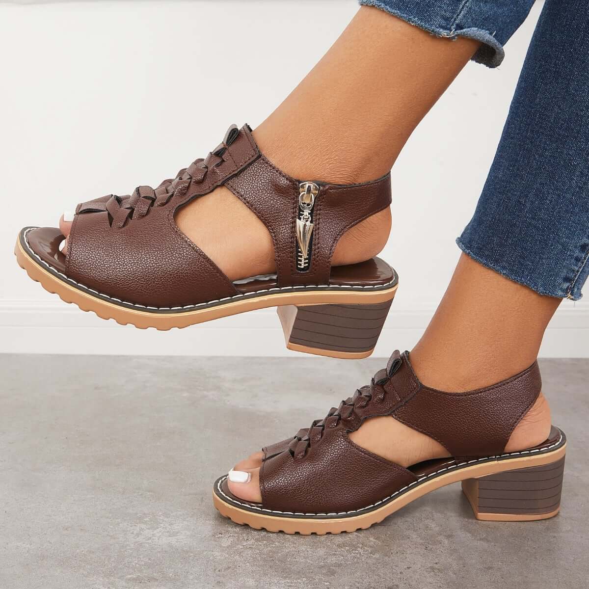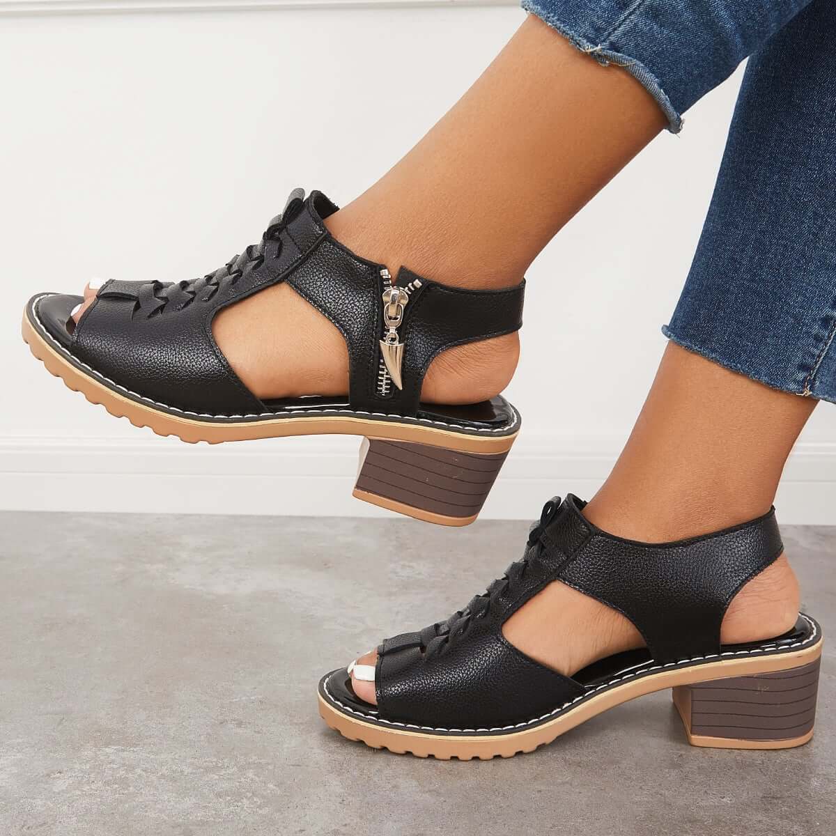 • Open Toe Block Chunky Heels Braided T-Strap Sandals
