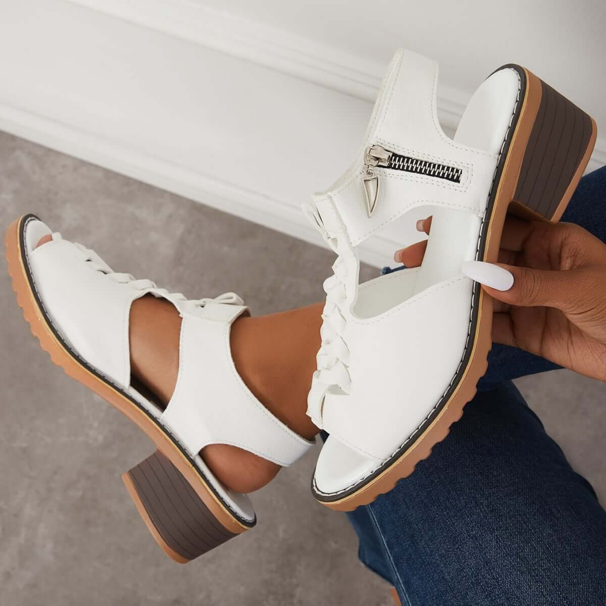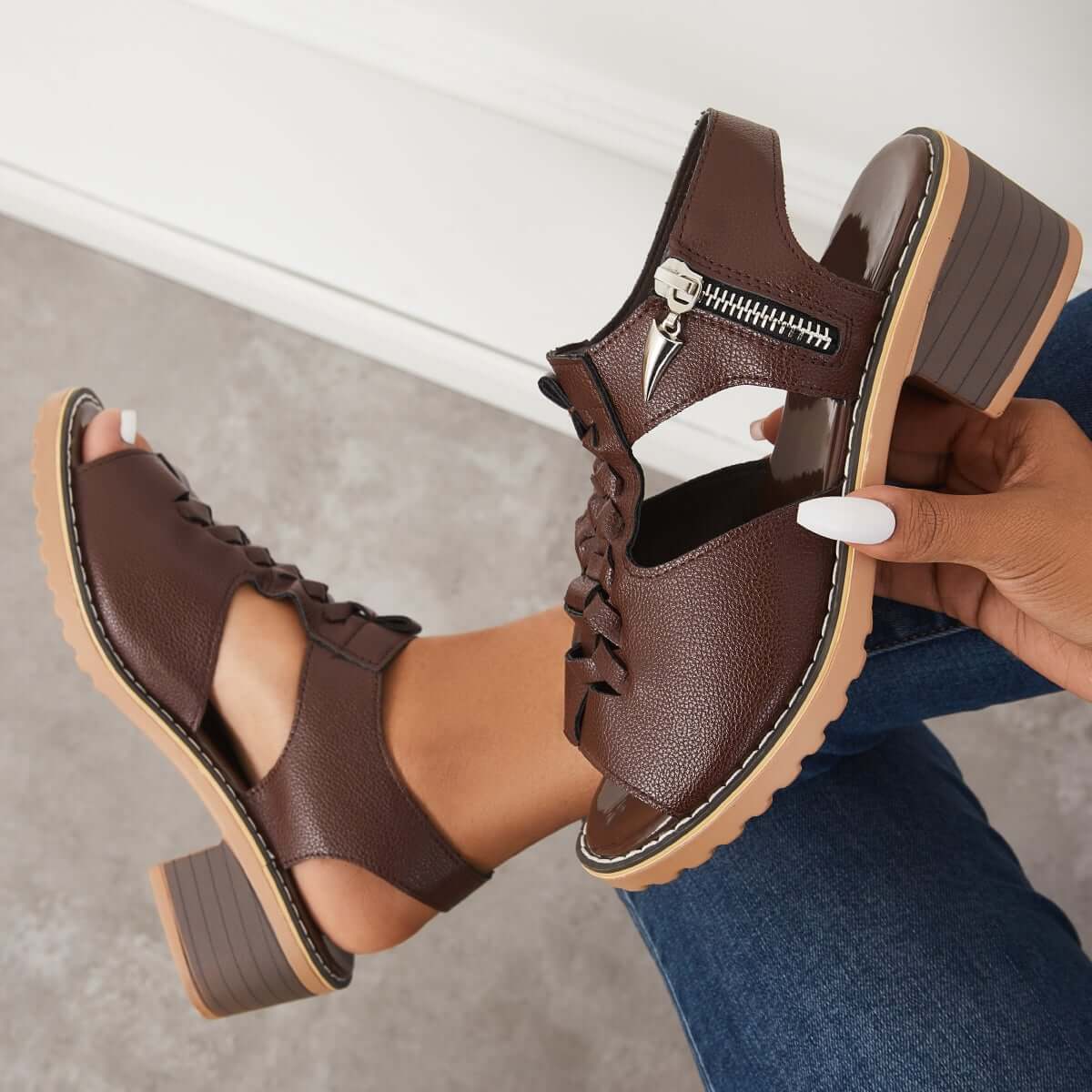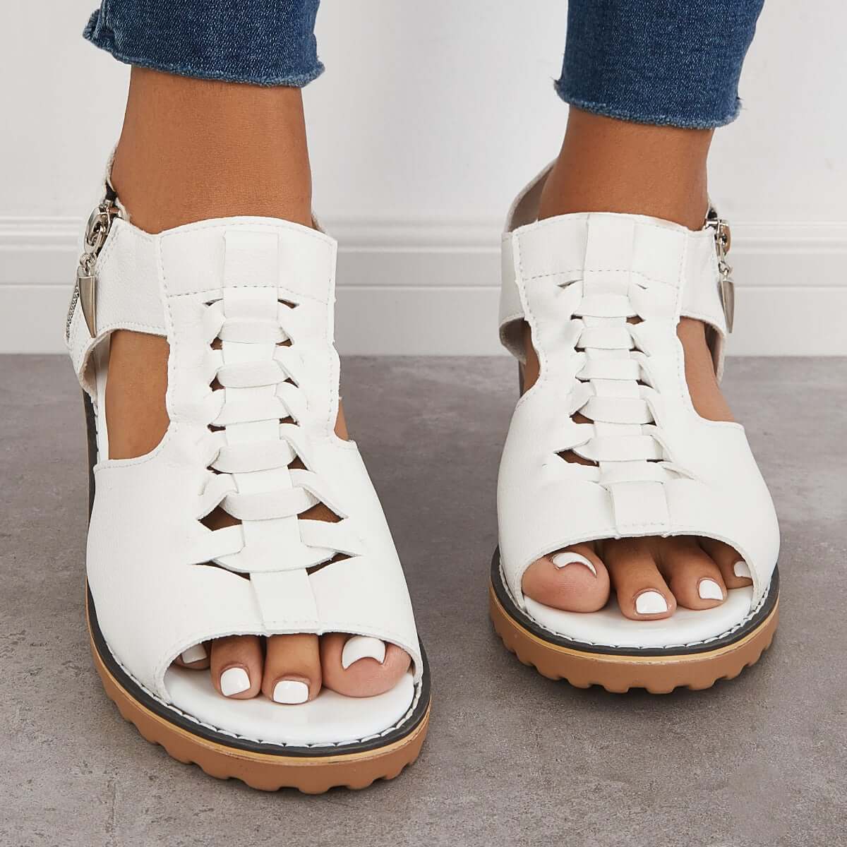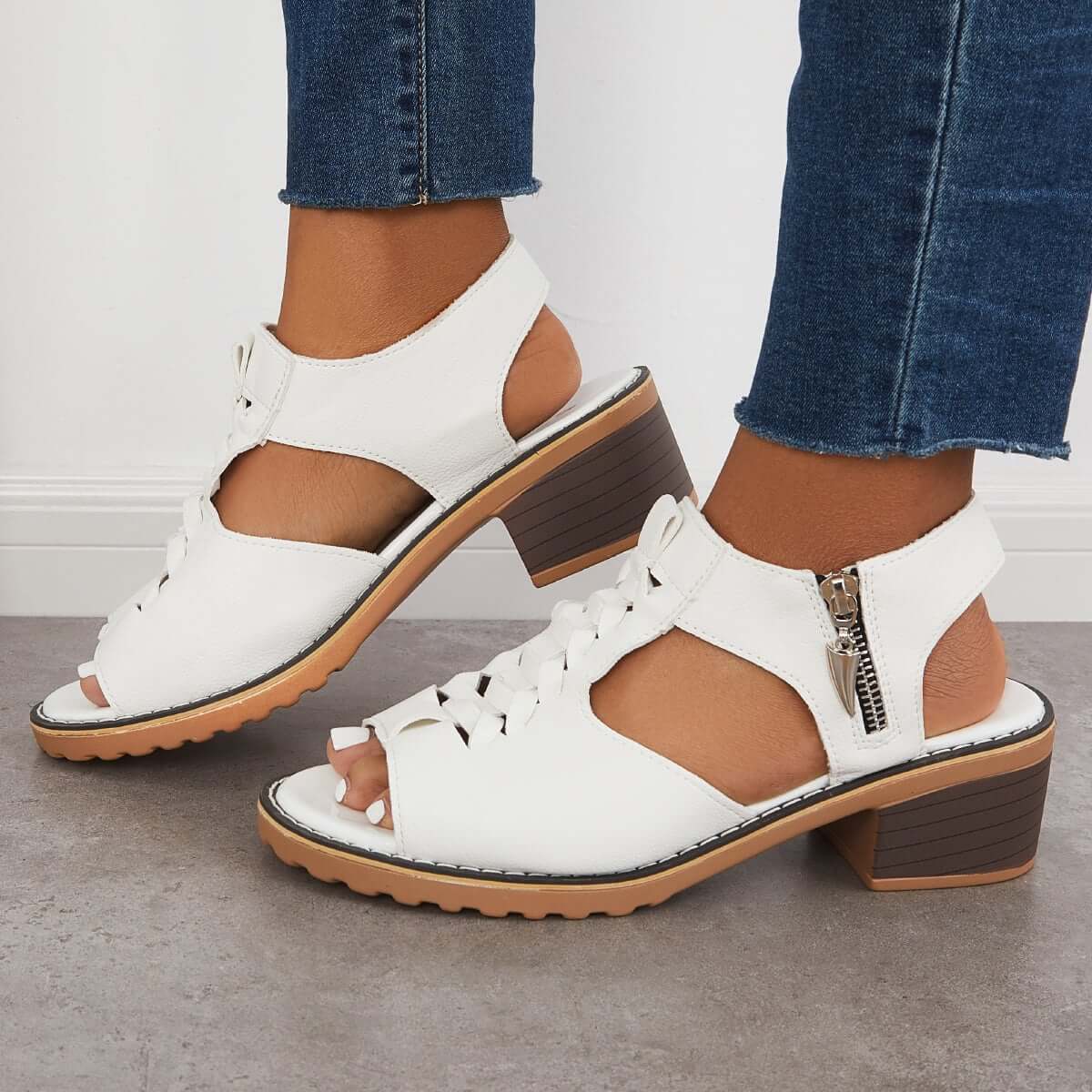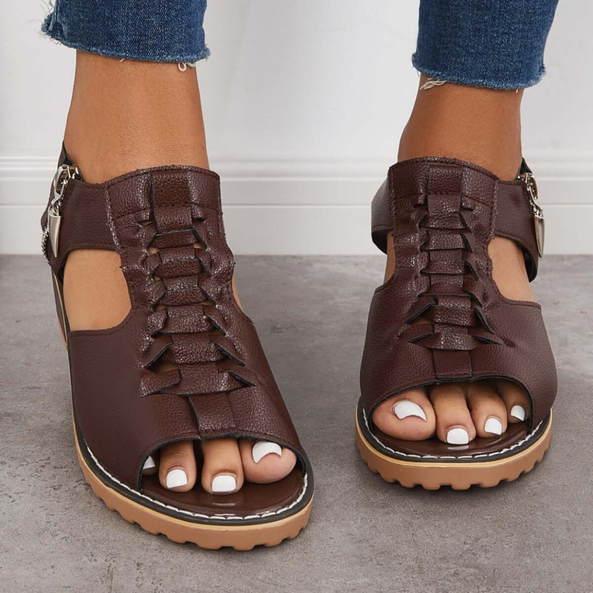 • Open Toe Block Chunky Heels Braided T-Strap Sandals