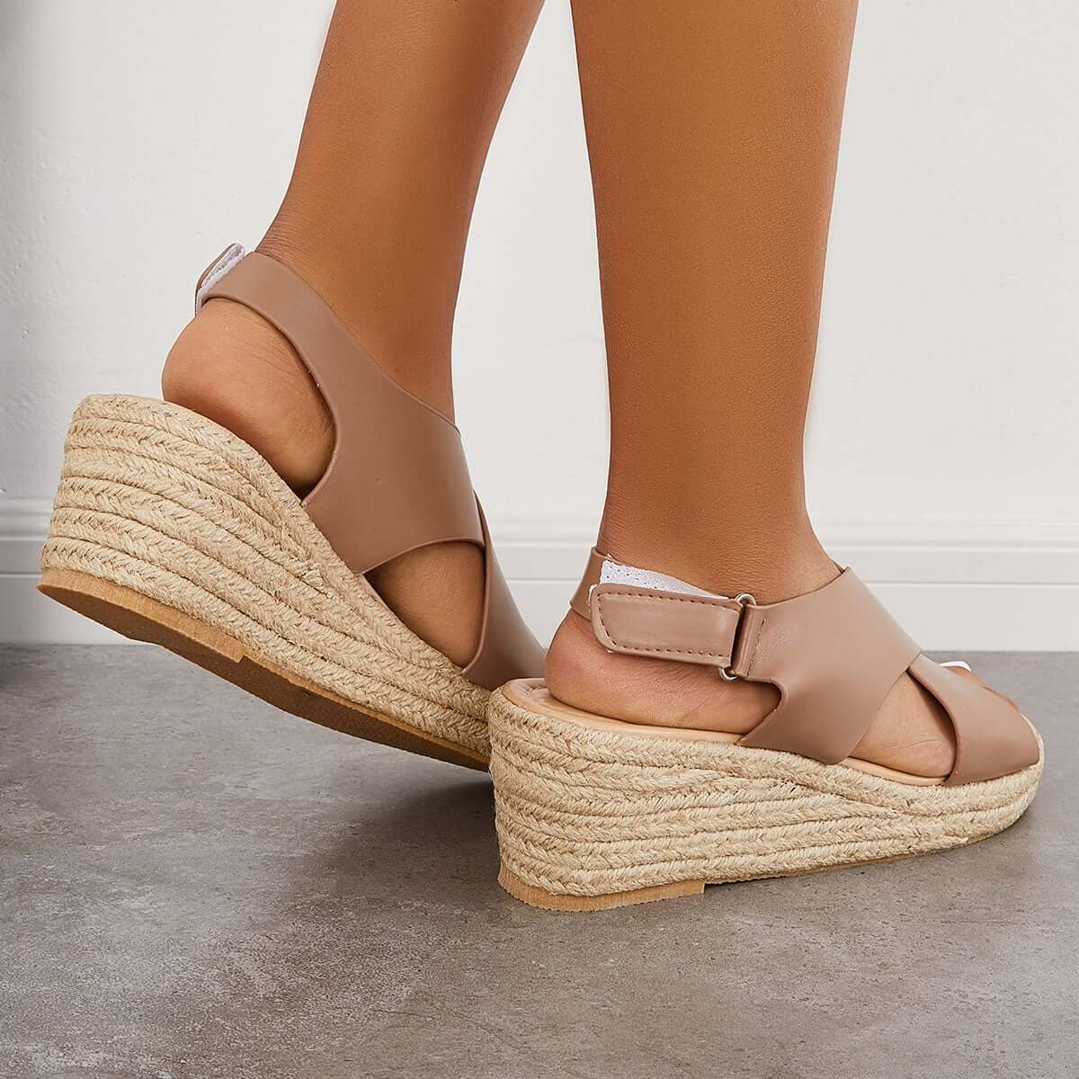 • Open Toe Criss Cross Platform Espadrilles Wedge Sandals
