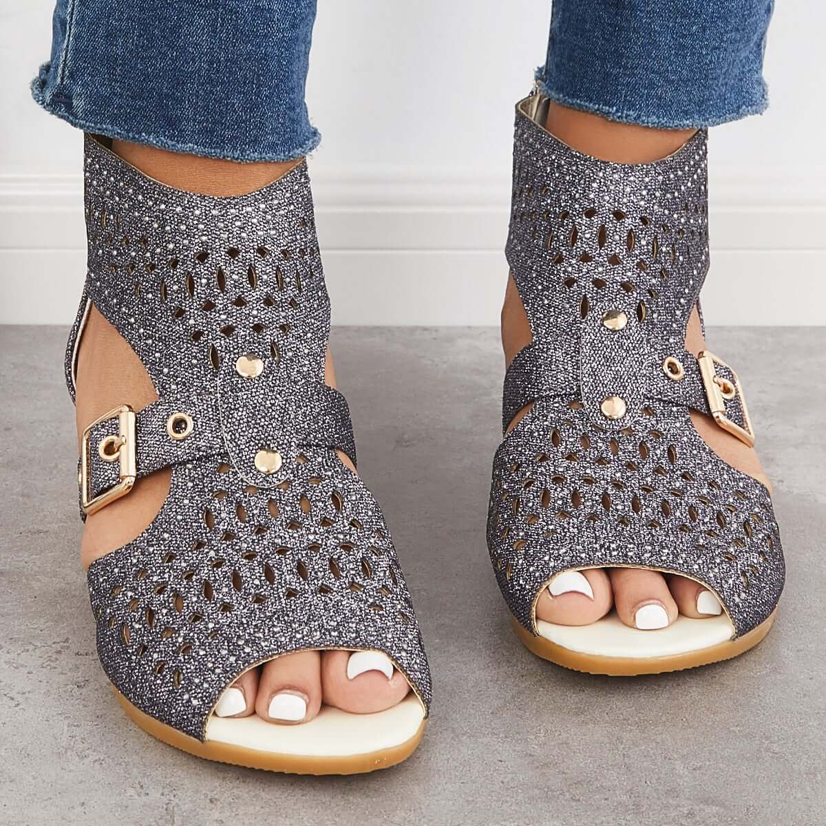 Casual Block Heel Sanadals Hollow Cutout Back Zipper Sandals