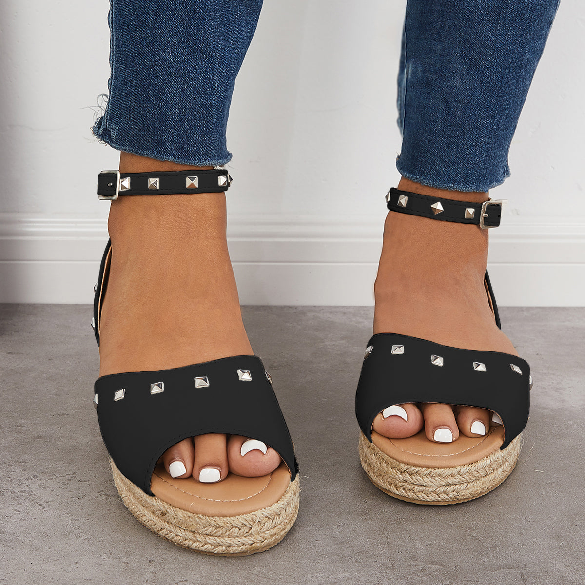 Rivet Open Toe Espadrilles Flat Heel Ankle Strap Sandals