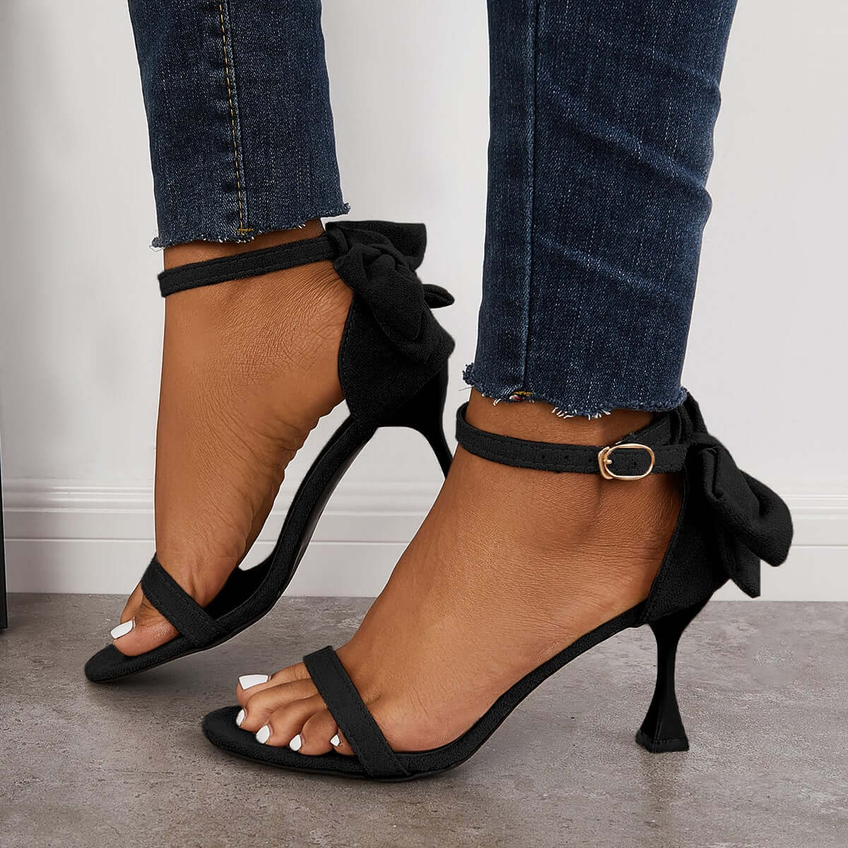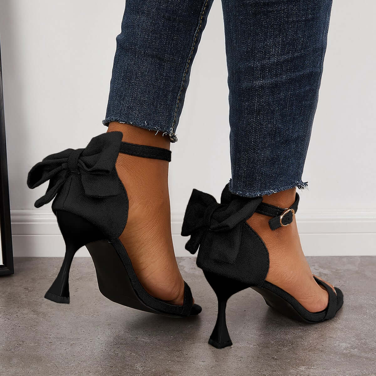 Bowknot Open Toe Ankle Strap Sandals Wedding Dress Kitten Heels