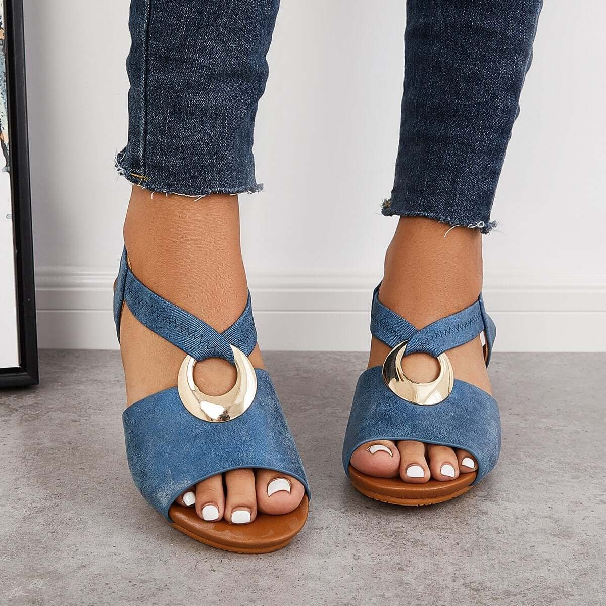 Casual Open Toe Stacked Heel Wedges Ankle Strap Sandals