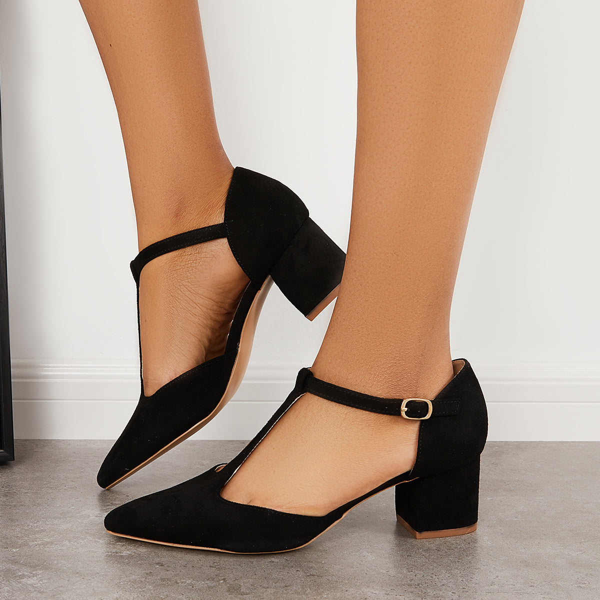 Casual Block Mid Heel Pumps Ankle Strap Dress Heels